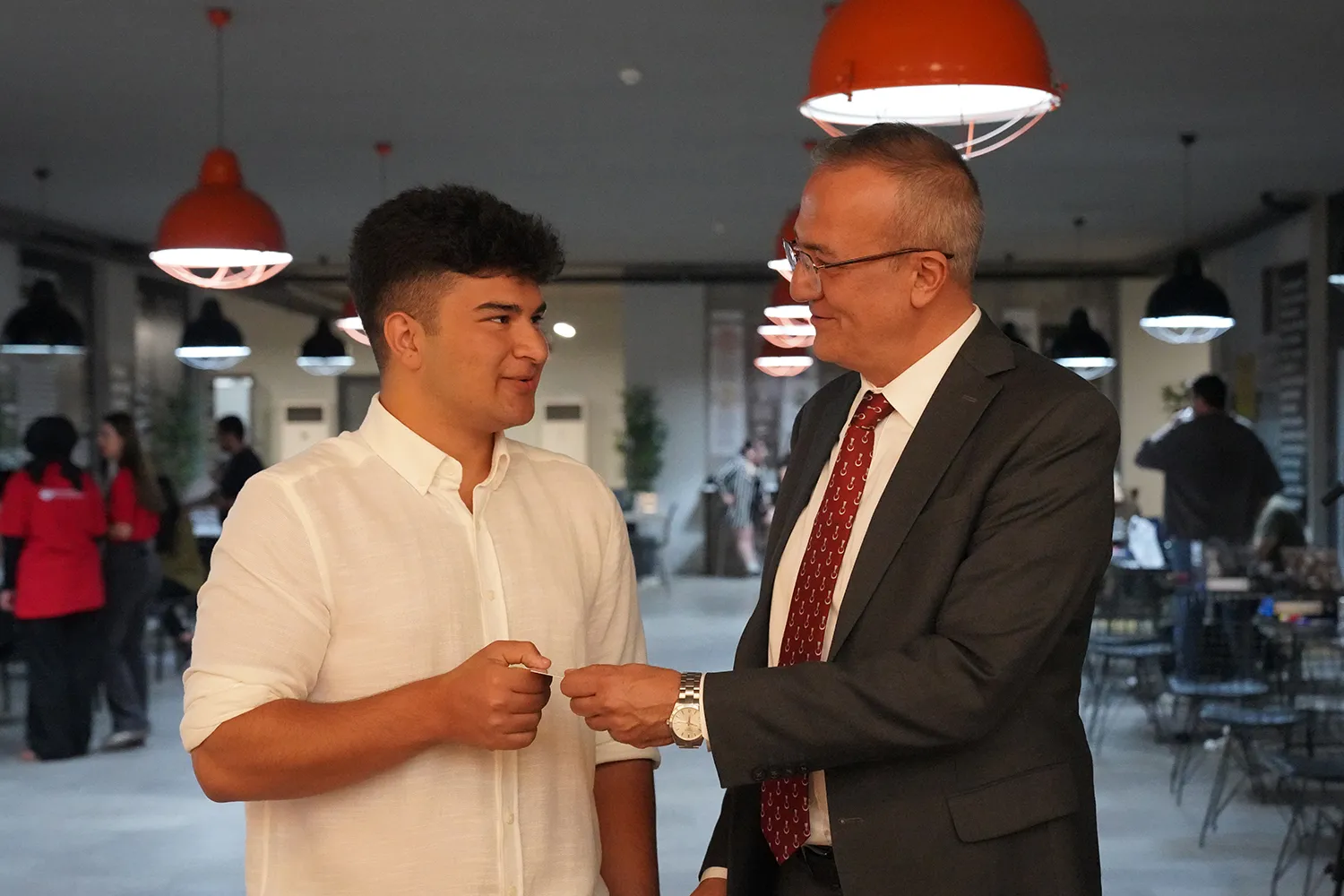 Bu yılın ilk öğrenci kaydını yapan ve açıklamalarda bulunan Rektörümüz Prof. Dr. Hasan Ali Karasar, 2025-2026 akademik yılının Üniversitemizin kuruluşunun 20. yılı olması sebebiyle ayrı bir anlam taşıdığını belirtti. Rektörümüz Prof. Dr. Hasan Ali Karasar, Üniversitemizin 2025-2026 akademik yılı için bilişim alanında yaptığı atılımları vurguladı. Bilişim alanında yürüttüğümüz vizyon doğrultusunda yeni açılan lisans ve ön lisans bölümlerimizle bilişim alanına yeni bir boyut kazandırdığımızı ifade etti. Karasar: “Bu yolda attığımız adımlar geleceğin mesleklerine yön veren bir vizyonun ürünü oldu. Bugün ilk kaydımızı bu bölümlerden bir öğrencimizle yapıyor olmamız, bizim için ayrı bir gurur kaynağıdır. Kapadokya Üniversitesi olarak, yalnızca bugünün ihtiyaçlarını karşılayan değil, yarının dünyasını inşa edecek gençleri yetiştirmeyi hedefliyoruz. Yapay Zekâ ve Makine Öğrenmesi bölümümüzü yüzde 100 burslu olarak kazanan ve şu anda kaydını yaptığım öğrencimiz Alaattin Efe Yurteri’ye öğrenim hayatında başarılar dilerim. Umarım birkaç yıl sonra diplomasını da böyle veririz.” dedi.
