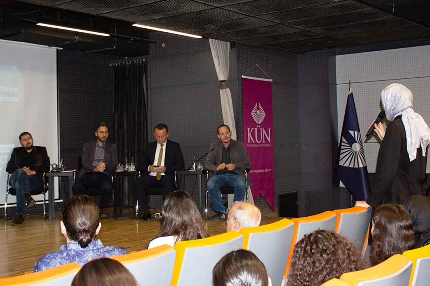 Öğrenci sunumlarının yer aldığı oturumda, NEVÜ Uluslararası İlişkiler Bölümü öğrencileri Merve Nur Kaynar, Deniz Özgür ve Saliha Meryem Başol ile KÜN öğrencileri Nihan Çeliker, Asif Verdikhanlı ve Sibel Canan Şen çeşitli konularda sunumlar yaptılar.