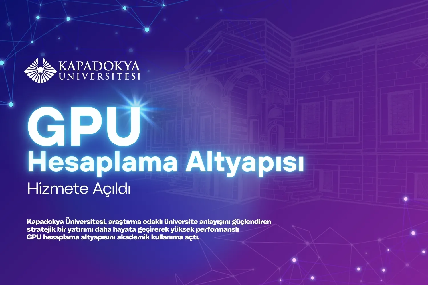 Üniversitemiz bu yatırımla, eğitim ve araştırma alanlarında dijital dönüşümü yalnızca takip eden değil, bu dönüşümü akademik üretime entegre eden bir üniversite olma farkını ortaya koyuyor. GPU hesaplama altyapısının temel amacı; araştırma kapasitemizi niteliksel olarak artırmak, ileri teknoloji temelli bilimsel çıktıları teşvik etmek ve ulusal-uluslararası ölçekte rekabet edebilecek araştırma ortamını kalıcı biçimde güçlendirmek olarak öne çıkıyor.